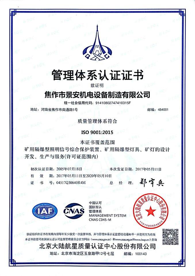 焦作市景安機電設備制造有限公司(原焦作市無線電一廠),是國家重點生產(chǎn)礦用防爆電子電器產(chǎn)品的專業(yè)企業(yè),全國煤炭行業(yè)機電產(chǎn)品定點生產(chǎn)單位,中國電器工業(yè)協(xié)會防爆電氣分會理事,市級礦用隔爆型工程技術中心,公司占地30000平方米,廠房10000平方米,ISO9001:2008質量管理體系和A級計量認證企業(yè)。